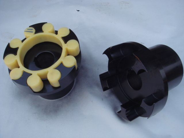 固定型:定位螺絲固定梅花聯軸器也叫爪式聯軸器,是由兩個金屬爪盤和一個彈性體組成。兩個金屬爪盤一般是45號鋼,但是在要求載荷靈敏的情況下也有用鋁合金或不銹鋼材料的。 梅花形彈性聯軸器利用梅花形彈性元件置于兩半聯軸器凸爪之間,以實現兩半聯軸器的聯接。具有補償兩軸相對位移、減振、緩沖、徑向尺寸小、結構簡單、不用潤滑、承載能力較高、維護方便等特點,但更換彈性元件時兩半聯軸器需沿軸向移動。